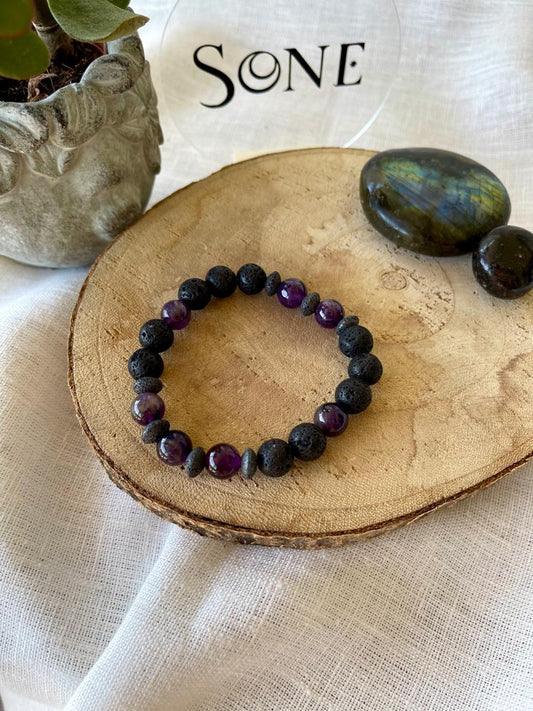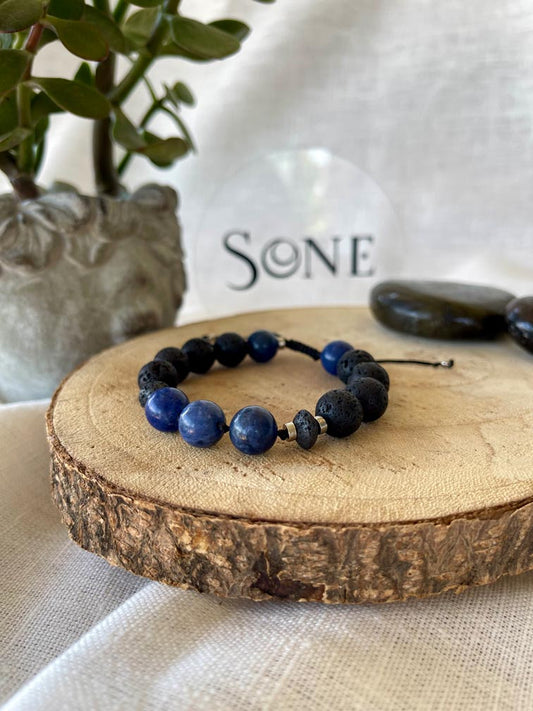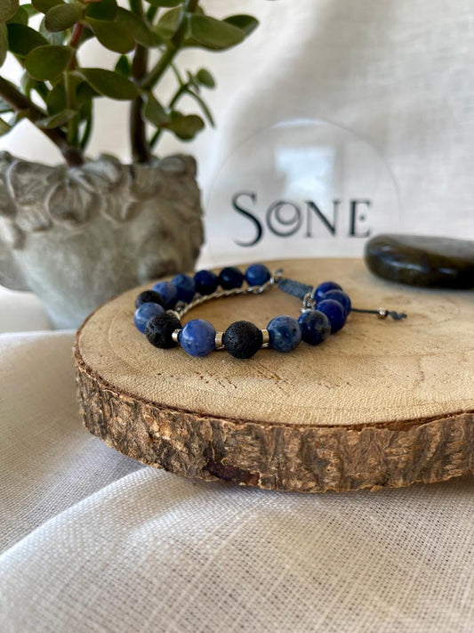 Bracelet Mat - Pierre de lave et Sodalite ajustable