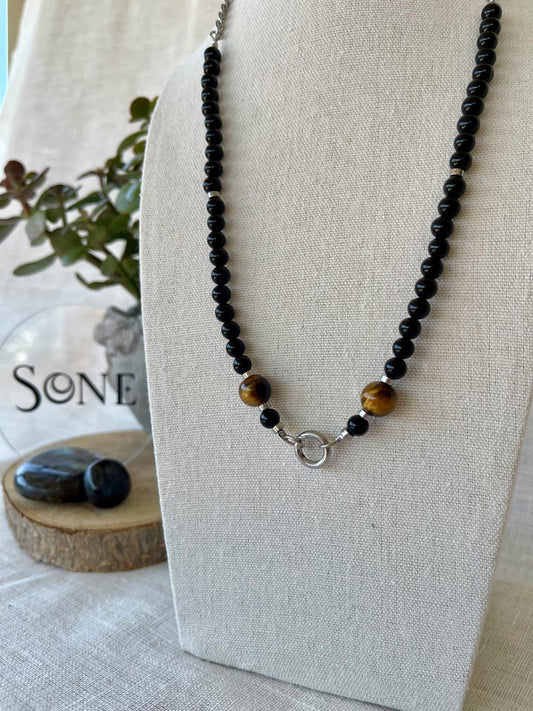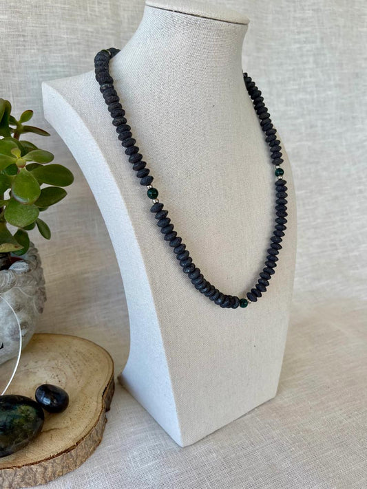 Collier Carro - Pierre de lave ovale et Agate Mousse