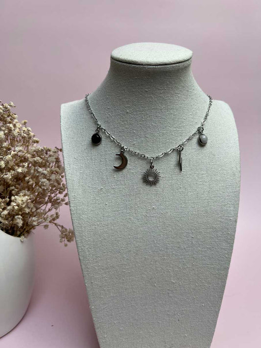 Le bijou chemin de vie est unique et personnel il reflète votre chemin d'évolution. Composé de 8 pierre de symbolique différentes disposées dans un ordre précis. Les pierres qu'il comporte sont liées à vos prénoms noms et date de naissance. Deux pierres peuvent être similaire mais ne pas avoir la même symbolique. Ce bijou sera votre compagnon, synonyme de soutien, d'amour et de joie.