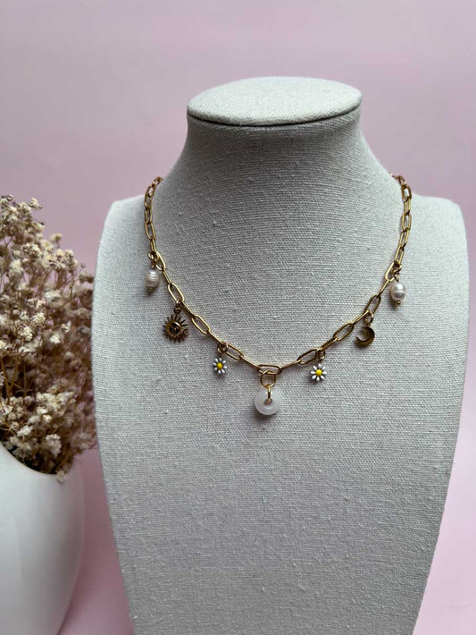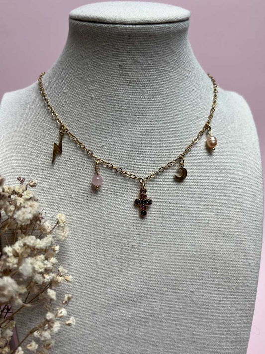 Créez votre bijou unique en 3 étapes : choisissez votre chaîne, ajoutez un fermoir, puis personnalisez-le avec des pampilles de votre choix !