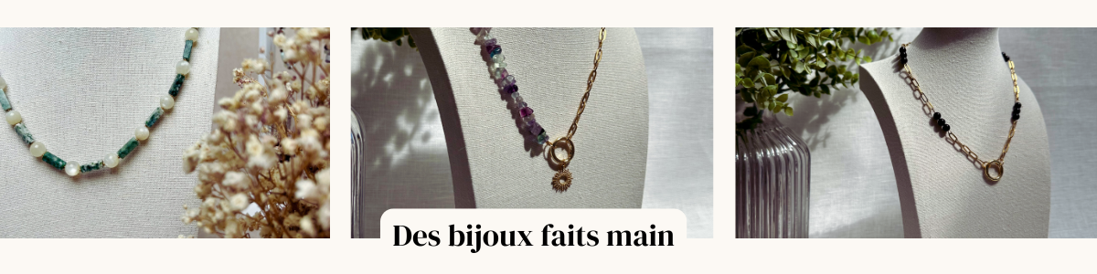 Les bijoux sont créés et assemblés à la main avec des matériaux durables et de qualités.
