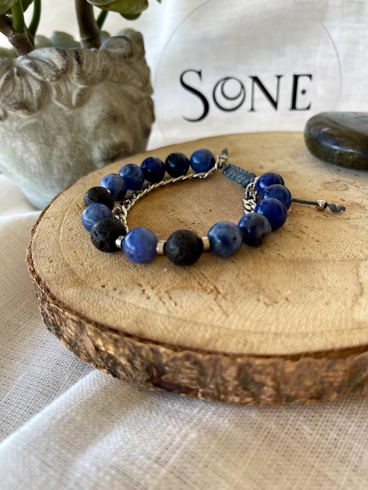 Bracelet Full - Pierre de lave, Sodalite et chaine ajustable