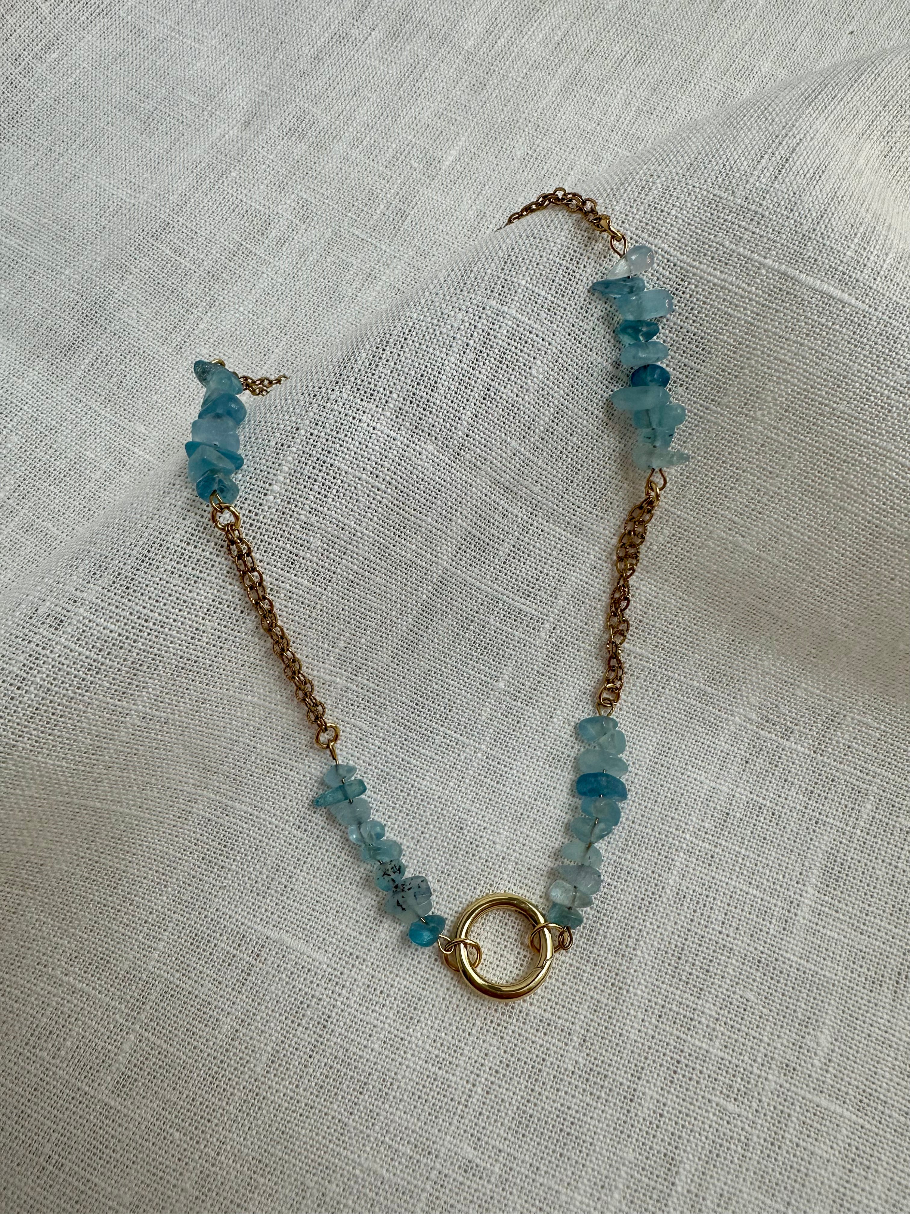 - Rangement : Lorsque vous ne la portez pas, conservez l’aigue-marine dans un tissu doux ou une pochette en velours pour éviter les rayures et protéger son éclat. Cela permet aussi de la préserver des énergies extérieures.