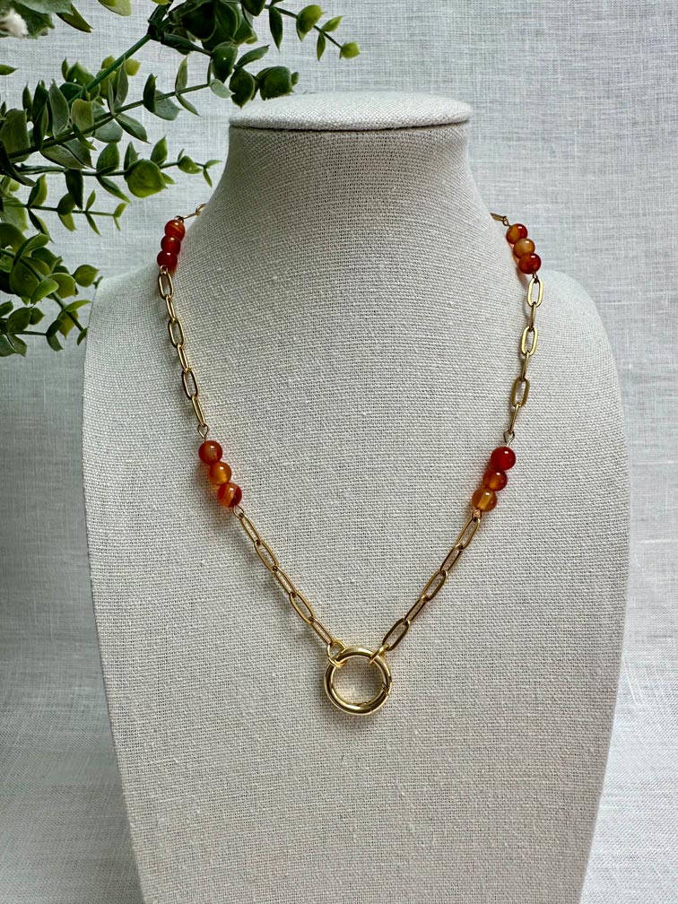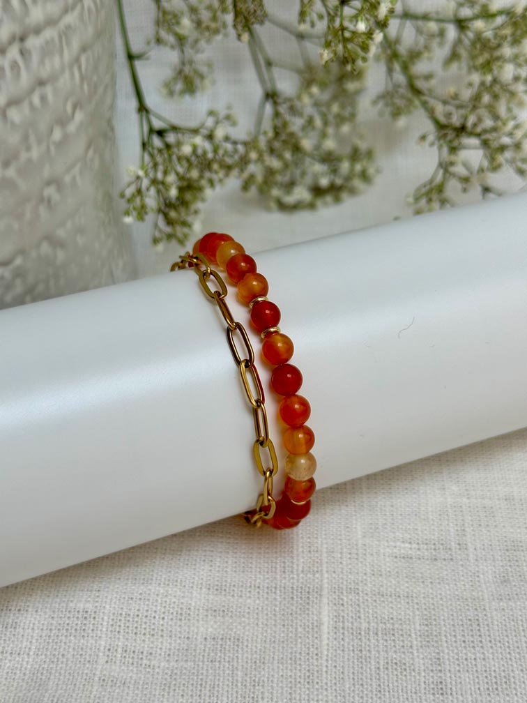 La Citrine, associée à l’abondance et au bonheur, complète parfaitement l’énergie chaleureuse et motivante de la Cornaline.