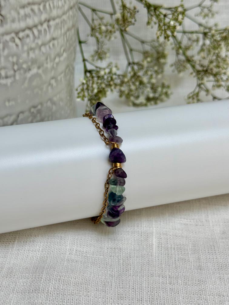 - Protection contre les énergies négatives : La fluorite est considérée comme une pierre de protection. Elle crée un champ énergétique protecteur autour de la personne qui la porte, bloquant les énergies négatives et les influences indésirables. Elle est idéale pour les personnes sensibles qui absorbent facilement les énergies environnantes ou qui sont fréquemment confrontées à des environnements stressants ou négatifs.