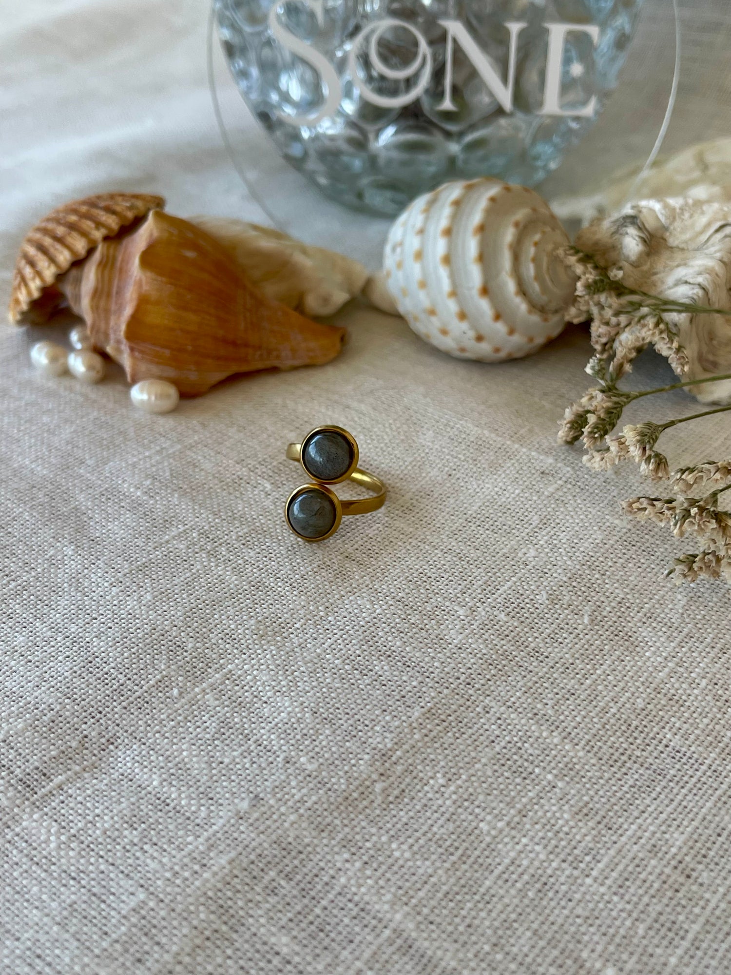 Bague Stella double - Jade blanc