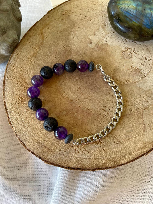 Bracelet Mix - Améthyste et Pierre de lave et chaine