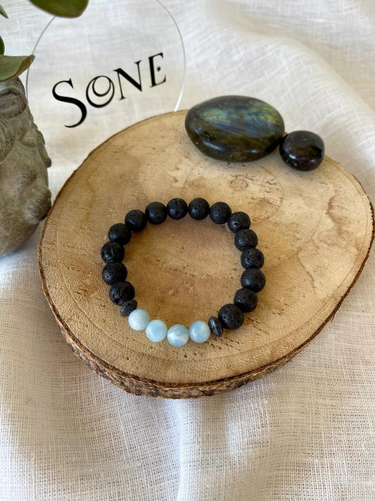 Bracelet Bob - Pierre de lave et Aigue marine